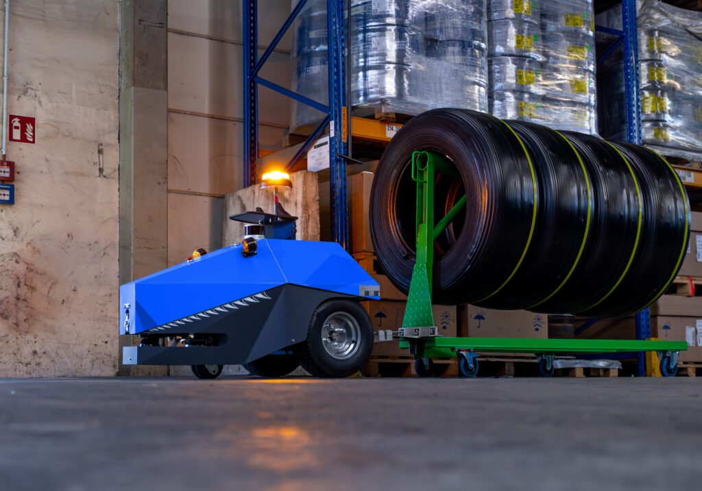 INDUROS agiert mit überragender Traktions- und Schleppleistung bis 1.300 Kilogramm. Indoor und Outdoor, auch bei unebener Bodenbeschaffenheit und Regenwetter. Automatisches An- und Ausdocken der Transportgeräte.