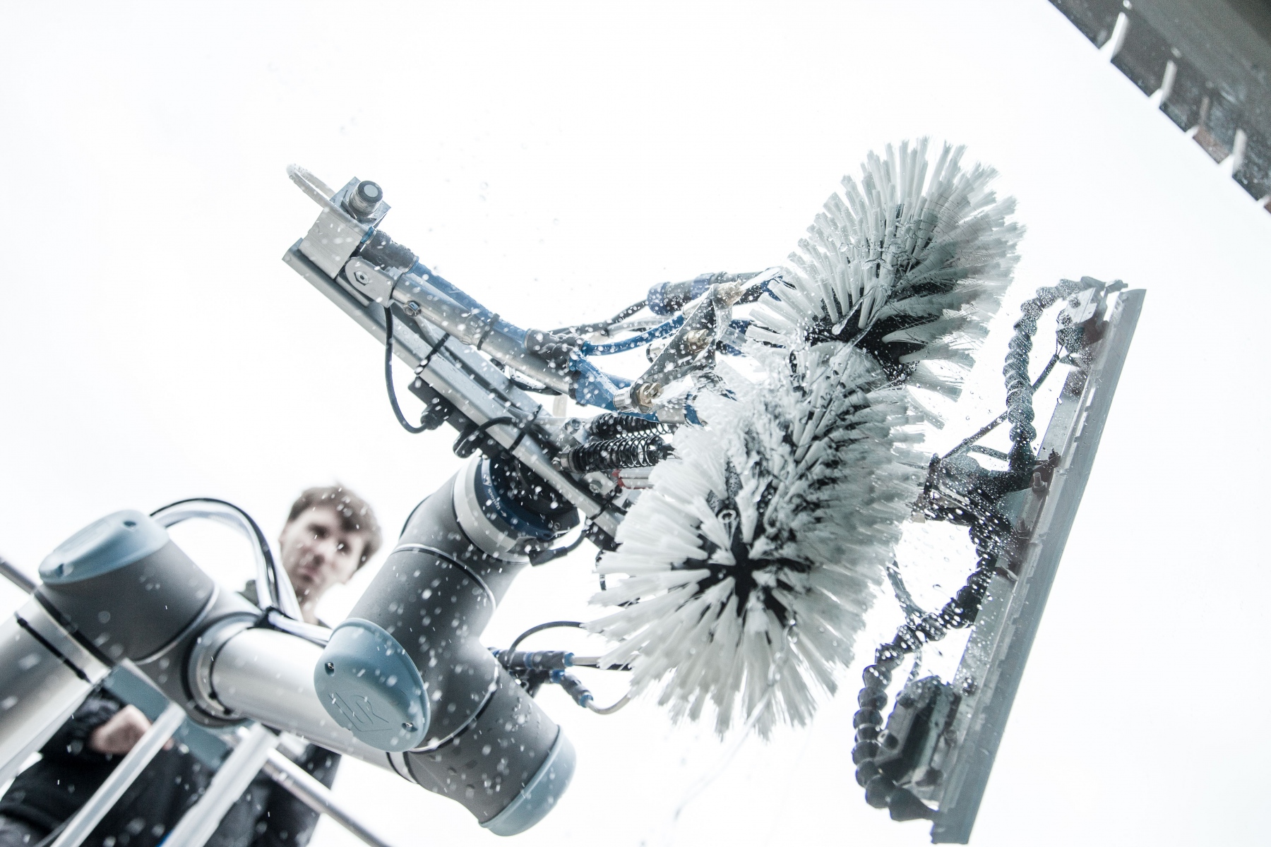 The vertical cleaning robot Clearbot is used for automated cleaning of glass and facade surfaces. Clearbot is designed for professionals and can be used and operated by a single person. On the building no extra installation is necessary because the cleaning robot works with conventional working platforms and therefore can be used highly flexible at different locations and facade types.